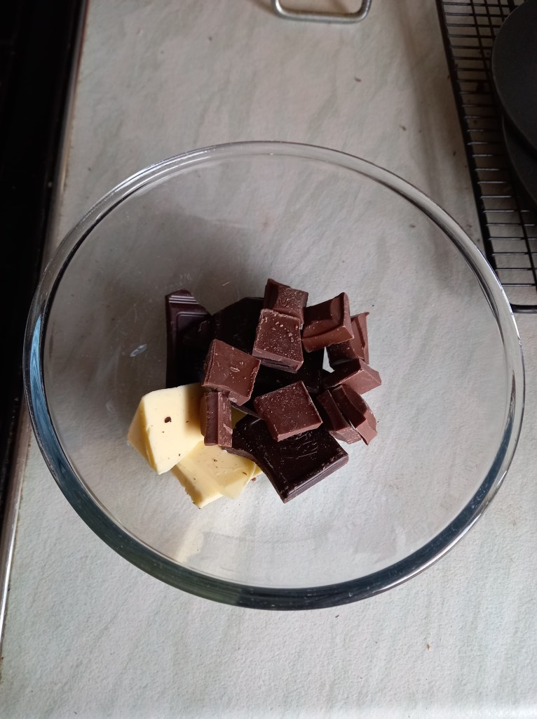 For the topping, I used a mixture of dark chocolate and orange-flavoured milk chocolate, melted in the microwave.